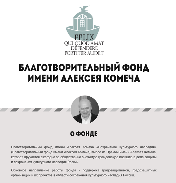 Основное направление работы фонда - поддержка градозащитников, градозащитных организаций и их проектов в области сохранения культурного наследия России. Например хнаменитый на всю Россию "Том Сойер фест".